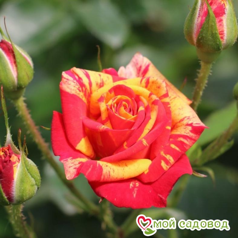 Роза Файер Флеш Этот сорт выведен в Голландии селекционерами фирмы Интерплант. Название «Файер Флеш» переводится с английского как «огненная вспышка». Оно полностью соответствует внешнему виду растения. Благодаря оригинальной окраске цветков купить рассаду стремится каждый розовод. Ботаническое описание Сорт Файер Флеш характеризуется небольшими размерами. Побеги у розы плотные и прочные. Листва крупная, тёмно-зелёная, с глянцевой поверхностью. Бутоны средне-махровые, пышные, классической бокалообразной формы. На одном кусте может формироваться несколько кистевидных соцветий, состоящих из 10 – 11 миниатюрных цветков (диаметром 4,5 см). Яркий цвет лепестков выделяет этот сорт среди других расцветающих культур в саду. Благодаря плавному роспуску бутонов красотой декоративного многолетника можно наслаждаться довольно длительное время. Применение Эту декоративную культуру любят использовать флористы. С её помощью составляют букеты и оформляют приусадебные участки. Файер Флеш подходит для украшения бордюров. Особенно хорошо растение смотрится в цветнике. Розу выращивают в смешанных и групповых композициях. Агротехника Посадка и уход за декоративным кустарником принципиально не отличается от выращивания других сортов. Единственная важная рекомендация – подобрать участок с хорошим освещением, защитой от ветра и с плодородным рыхлым грунтом. Уровень pH подойдёт слабокислый. Процедура посадки рассады осуществляется по такому алгоритму: Выкапывается лунка диаметром и глубиной 45 см. На дно укладывается дренаж из битого кирпича, песка или керамзита (толщина слоя – 10 – 15 см). Сверху насыпается перегной и небольшое количество почвенной смеси. Последний компонент предотвратит ожоги, возникающие при прямом контакте корневой системы с органикой. Растение помещается в посадочную ямку. Корневище аккуратно расправляется, а затем засыпается оставшимся субстратом. Земля вокруг кустов утрамбовывается и увлажняется тёплой водой. Уход за молодой рассадой довольно простой. Весь вегетационный период розе нужен умеренный и регулярный полив. В засушливое лето расход воды увеличивают. Оптимальный режим водных процедур – 2 раза в неделю, в утренние и вечерние часы. Чтобы сократить испарение влаги прикорневую зону мульчируют скошенной травой, торфом или древесными опилками. Чтобы простимулировать активный рост и формирование пышной листвы, весной Файер Флеш подкармливают азотсодержащими составами. Также в эту пору культура нуждается в обрезке. В обязательном порядке удаляют слабые, сухие и поражённые болезнями побеги. Во время бутонизации роза-спрей нуждается в калийных и фосфорных удобрениях. Ближе к концу осени сокращают поливы и вносят органику. Не смотря на то, что Файер Флеш славится высокой устойчивостью к минусовым температурам, молодую рассаду рекомендуется укрыть на зиму. С этой целью кусты окучивают землёй, накрывают еловым лапником и «дышащим» теплоизоляционным материалом (например, лутрасилом, спанбондом или агроволокном). Преимущества розы Файер Флеш К положительным сторонам этого сорта относятся: яркий окрас; повышенная сопротивляемость к заболеваниям; бутоны сохраняют декоративный вид даже после сильного дождя; на стеблях практически нет шипов; растение морозоустойчивое и неприхотливое в уходе; на солнце 